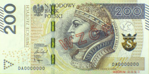 - Banknot obiegowy o nominale 200 zł zmodernizowany • sprzed modernizacji