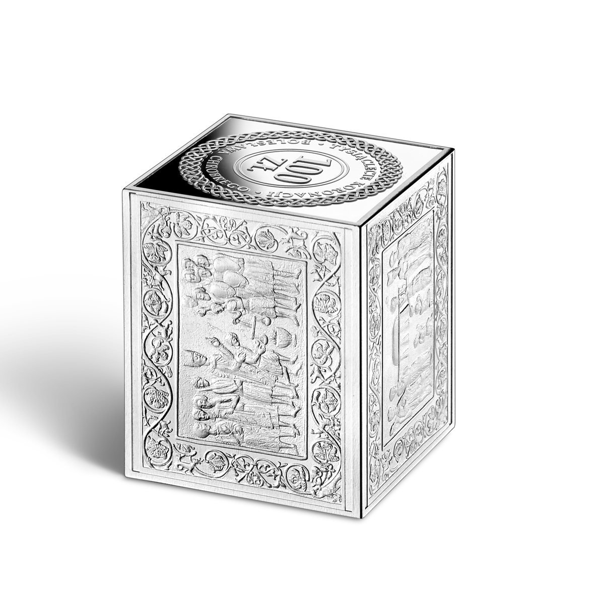 On the fourth side, the scene from the 18th panel of the Gniezno Doors, depicting the burial of St. Adalbert’s remains in Gniezno.