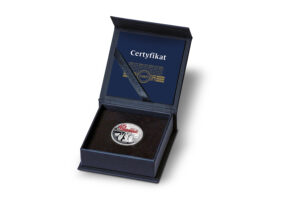 on the right, Pobóg – Stanisław Koniecpolski’s coat of arms; on the left, at the top, an image of the Eagle established as the state emblem of the Republic of Poland; below the Eagle, on the right, the Mint mark: m / w; at the bottom, a mace and the inscription: 500 zł. Along the upper rim, a semi-circular inscription reading clockwise: RZECZPOSPOLITA POLSKA (Republic of Poland) 2025.