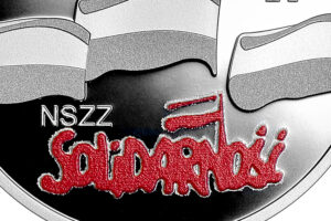 at the top, an image of the Eagle established as the state emblem of the Republic of Poland; below the Eagle, on the right, the Mint mark: m / w; to the right of the Eagle, the inscription: 10 / ZŁ. Along the upper rim, the semi-circular inscription: RZECZPOSPOLITA POLSKA (Republic of Poland) 2025. Below the Eagle, three stylised flags representing the flag of the Republic of Poland. At the bottom, the inscription: NSZZ, and below it, the logo: SOLIDARNOŚĆ, in red.