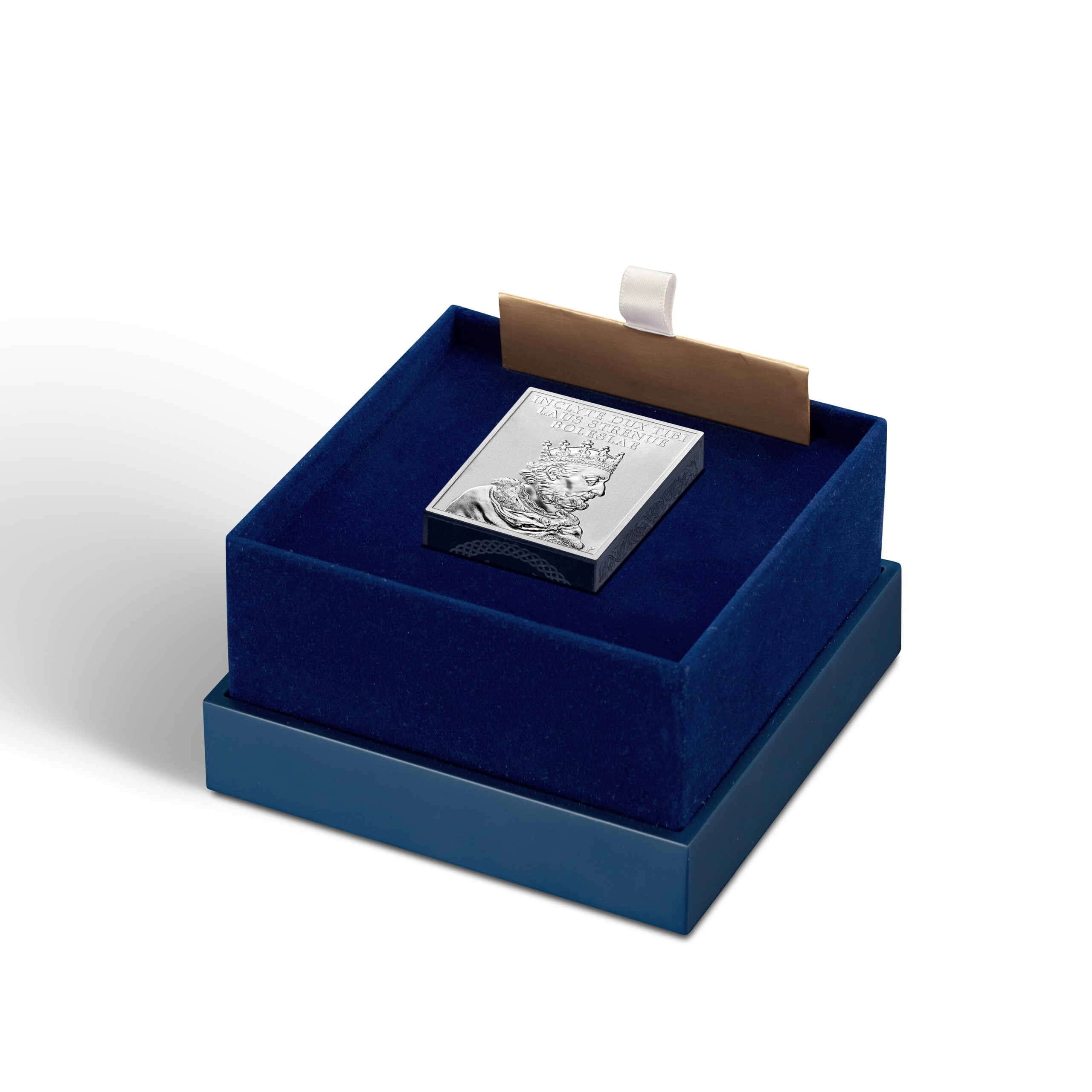 centrally, a stylised image of the White Eagle from the imperial seal of King Casimir the Great; beneath, regalia – the sceptre and the orb. To the left of the Eagle, a stylised fragment of the panorama of Kazimierz with the inscription: CASMIRVS; above it, an oval with fragments of a crown. To the right of the image of the Eagle, a stylised fragment of the panorama of Kraków with the inscription: CRACOVIA. Ribbons on the left and on the right. At the top, the inscription: RZECZPOSPOLITA POLSKA (Republic of Poland) and, on the right, the notation of the year of issue: 2025. At the bottom, against the background of a rectangular plane with an ornament, on the left, the number: 50, and on the right, the inscription: PIĘĆDZIESIĄT / ZŁOTYCH (fifty złoty). In the bottom right corner, the letters: NBP. Above them, an image of the Eagle established as the state emblem of the Republic of Poland; below the Eagle, on the right, the Mint mark: m / w; on the left, the inscription: Au 999,9.