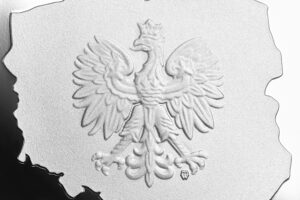 centrally, against the background of a stylised contemporary map of Poland, the image of the Eagle established as the state emblem of the Republic of Poland. Below the Eagle, on the right, the Mint mark: m / w. On the left, at the bottom, the inscription: 10 zł. Below, along the rim, the inscription: RZECZPOSPOLITA POLSKA (Republic of Poland) 2025.