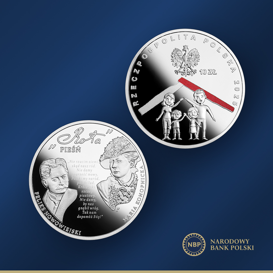 Narodowy Bank Polski poinformował, że od jutra będą dostępne w sprzedaży srebrne monety kolekcjonerskie „Pieśń »Rota«” z serii „W Polskę wierzę”.